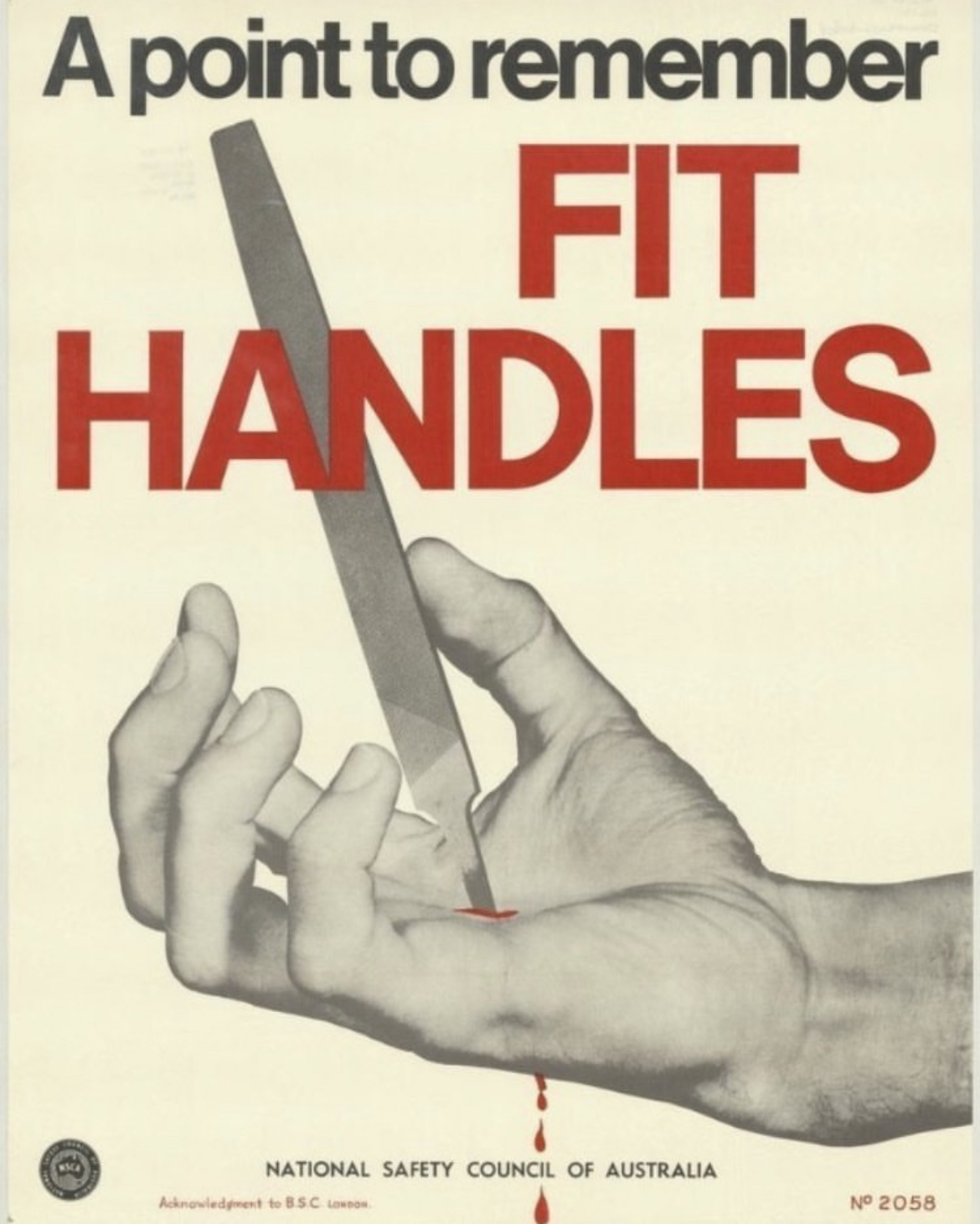 You should always use a file handle when using a file. Accidents happen quickly, and as noted in the picture to the right, a file handle could help prevent you getting significant damage to your hand, or at least minimize the injury.