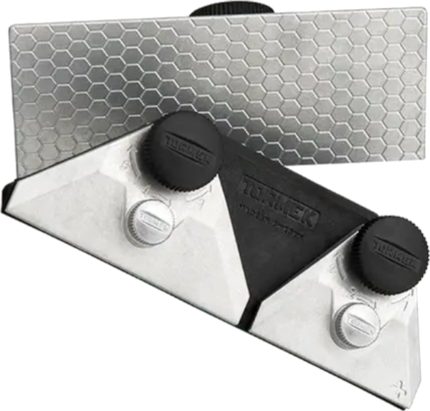 However, if you are sharpening left-handed scissors and they cannot be disassembled into the two pieces, you will need to sharpen from the horizontal position as the piece not being sharpened would interfere with the process otherwise (it would hit the Tormek machine).