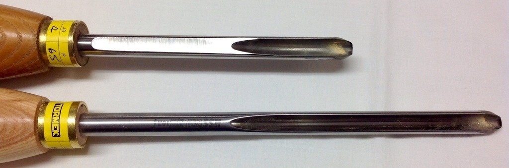 ![]() The Tormek handbook, Water Cooled Sharpening of Edge Tools, recommends that this grind shape is for turners of all skill levels. Others feel that 40° is a far better grind angle (except for bowl bottom gouges), especially if pursuing a multiple bowl gouge workflow. Note: I do not see this grind discussed often in woodturning fora or at woodturning tool sharpening events. |