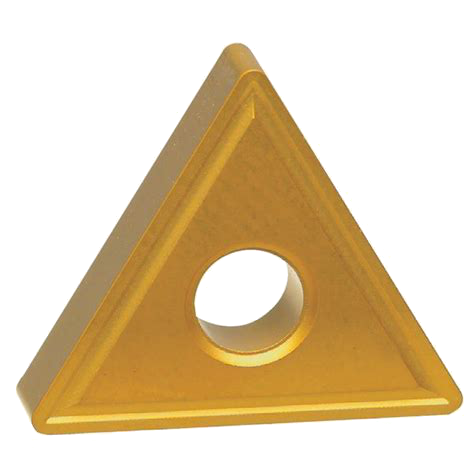 ![]() V Shaped Cutter ![]() Use the Tormek SVD-110 Tool Rest with the Square Cutter Holder and an angle jig (example below). For the micro bevel, set the angle of the SVD-110 at 75° using the WM-200 AngleMaster. The high β angle helps support the cutting edge. Setting a nose radius of 0.007 in. (0.2 mm) is a good idea. If it is too pointy, the result on the work will look rather like a just-raked sand trap. A similarly radiused approach is shown on the carbide insert pictured to the right. |